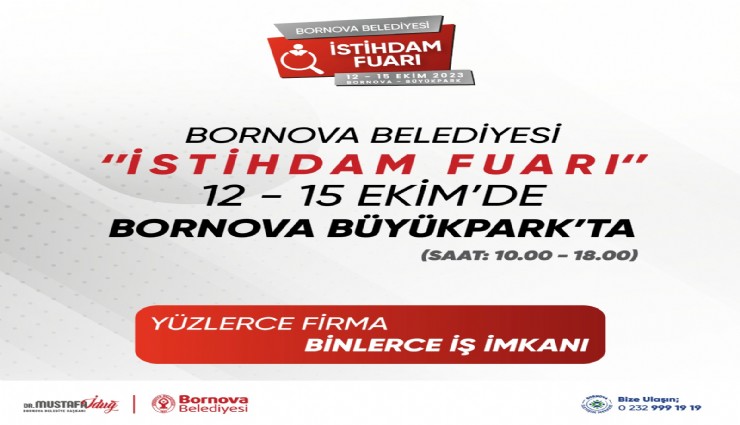 Bornova Belediyesi’nin iş arayanlarla işverenleri buluşturacağı Türkiye’nin en kapsamlı fuarlarından biri olacak İstihdam Fuarı, 12 Ekim 2023’te saat 16.00’da Bornova Büyükpark’ta açılacak.