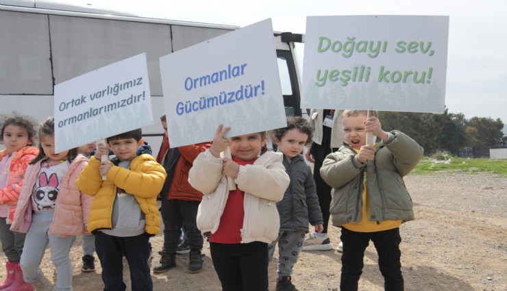 21-26 Mart Orman Haftası kapsamında hazırlanan etkinlikte 80 çocuk Karacaoğlan Mahallesi’nde fidan dikimi gerçekleştirdi. Dikim alanına ellerinde ‘Ormanlar miras değil, emanettir’, ‘Doğayı sev, yeşili koru’, ‘Yol yeşilken geri dönün’ ve ‘Köklerimize sahip çıkalım’ gibi yazıların olduğu dövizlerle giren minikler, ağaçların nasıl dikileceğini öğrenirken ağaç bakımı konusunda da bilgi aldı.