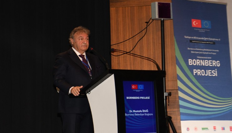 BORNBERG Projesi Açılış Toplantısı’nda yaptığı konuşmada iki belediye arasındaki deneyim paylaşımının önemine dikkat çeken Bornova Belediye Başkanı Dr. Mustafa İduğ, “Bornova Belediyesi olarak BORNBERG projesi’nden 110 bin Euro, yine bir iklim projesi olan STORMLOG projesinden ise 500 bin Euro hibe krediyi ilçemize kazandırdık. Bu kaynaklarla Bornova için çok önemli çalışmalar yapılacak. Bu çalışmalarda en önemli kısım deneyim paylaşımı” dedi.