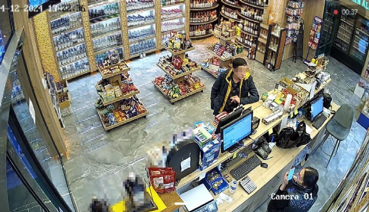 Olay 24 Aralık günü öğle saatlerinde ilçeye bağlı Atatürk Mahallesi’nde bir markette meydana geldi. İçeri giren O.S. (26), market sahibi N.K.’nin oğlunun arkadaşı olarak kendisini tanıtıp, 15 paket sigara, iki şişe viski ve bir şişe rakı almak istediğini, ücreti de IBAN ile oğluna göndereceğini söyledi. Bu esnada iş yeri sahibinin bir anlık dikkatsizliği esnasında marketten ayrılan O.S., kayıplara karıştı. O anlar da marketin güvenlik kamerası tarafından görüntülendi.