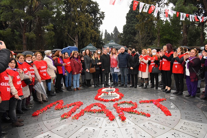 Bornova’da Cumhuriyet Meydanı’nda bir araya gelen kadınlar, şarkı, türkü ve sloganlarla Büyükpark’a yürüdü. Şiddete, eşitsizliğe ve kazanılmış haklarına yönelik saldırılara karşı duruşlarını pankartlarla da dile getiren kadınlar, savaşa karşı barış çağrısı da yaptı. Hep beraber halaylarında çekildiği etkinliğe Bornova ve Kemalpaşa Belediyesi kadın çalışanlarının yanında Bornova Belediye Başkanı Dr. Mustafa İduğ, DİSK/Genel-İş Sendikası 7 No'lu Şube Başkanı Özgür Genç, DİSK Ege Bölge Temsilcisi Memiş Sarı, Kemalpaşa Belediye Başkan Yardımcısı Arzu Külahcıoğlu Altıntoz ve siyasi parti temsilcileri de katıldı.