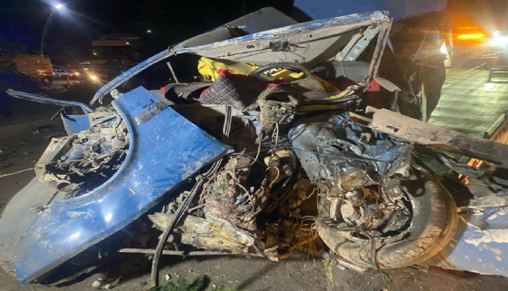 Uşak’ta karşı şeride geçen otomobilin tırla çarpıştığı kazada 4 kişi yaralandı. Otomobilin metal yığınına döndüğü kazada, ortalık savaş alanına döndü.