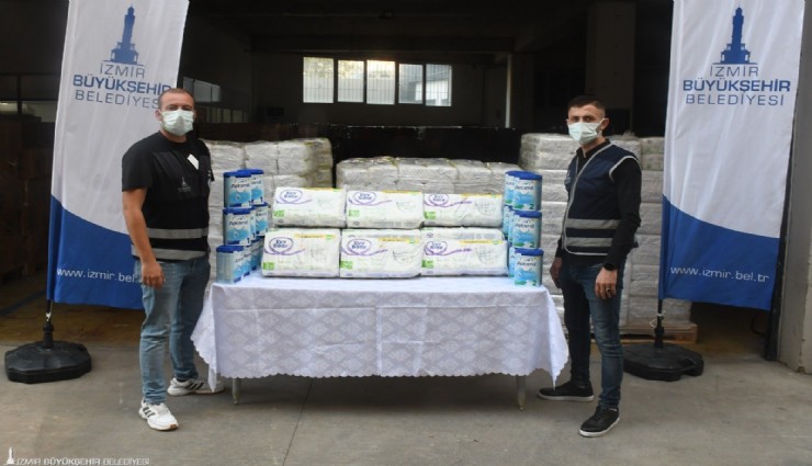 Sosyal belediyecilik çalışmaları ile Türkiye’ye örnek olan İzmir Büyükşehir Belediyesi, gıdadan süte, giysiden sıcak yemeğe, tabletten kitap desteğine kadar ihtiyaç sahiplerinin yanında olmaya devam ediyor. Büyükşehir, bebeği olan ailelere ücretsiz bebek bezi ve mama desteği de sağlıyor. Kentte 2019 yılından itibaren yurttaşlara 100 binin üzerinde bez ve mama ulaştırıldı.
