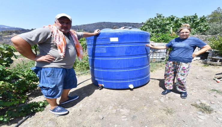 Doğançaylı üretici Mesut Garip, “Yangından önce bizim sularımız göletten aşağı hortumlarla iniyordu. Yangından sonra hortumlar yandı. Dolayısıyla kurtulmuş olan bağımız, bahçemiz, zeytinliklerimiz kurumasın diye başkanımızdan dün su talep ettik. Hemen tankerlerle sular geldi, havuzlarımızı doldurup ağaçlarımızı suladı. Bugün de havuzu olmayanlara su tankı gönderdiler. Daha dün konuştuk, bugün geldi sağ olsunlar. Böylelikle yangından kurtarılan ağaçlarımızı, geride kalanları kurutmuyoruz” şeklinde konuştu.