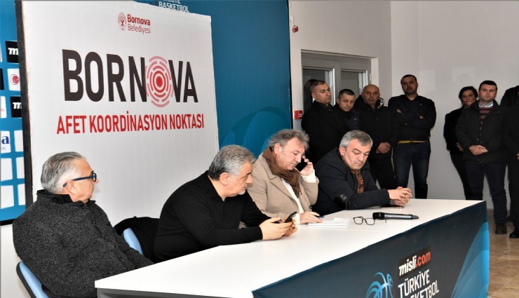 Meclis üyeleri, oda başkanları, STK’lar ve ilgili birimlerle Atatürk Spor Salonu’nda düzenlenen Afet Koordinasyon toplantısında Bornova Belediye Başkanı Dr. Mustafa İduğ, yürütülen çalışmaları değerlendirdi. Toplantıda, deprem bölgesinde bulunan Bornova Belediyesi ekipleri ve milletvekilleri ile de telefonla iletişim kuruldu; bölgeye yardım malzemesi taşıyacak TIR’ları, gidecekleri yerin ihtiyaçlarına göre hazırlandı.