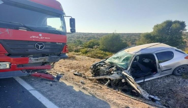 İzmir'in Çeşme ilçesinde meydana gelen kazada kamyon ile çarpışan otomobildeki 2 kişi ağır yaralandı.