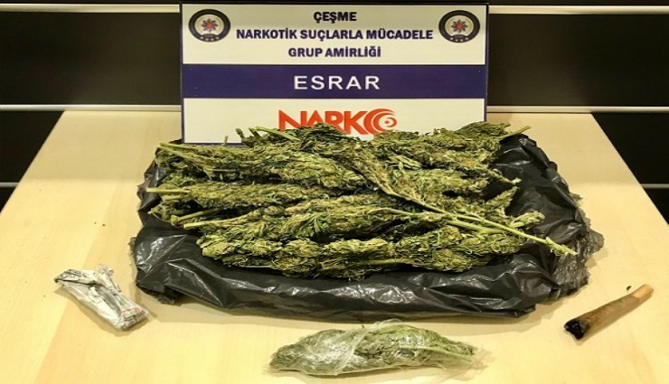 Çeşme Narkotik Suçlarla Mücadele Grup Amirliği (NARKO) ekipleri, Çiftlik Mahallesi'nin sahil kısmındaki bir otelin yanındaki ormanlık alanda, çadır kurup uyuşturucu maddenin ticaretinin yapıldığını tespit etti. NARKO ekipler, hemen şüphelileri takibe aldı. Operasyon düzenleyen ekipler, 2 zanlıyı ormana gömdükleri uyuşturucu maddenin yanına giderken yakaladı.