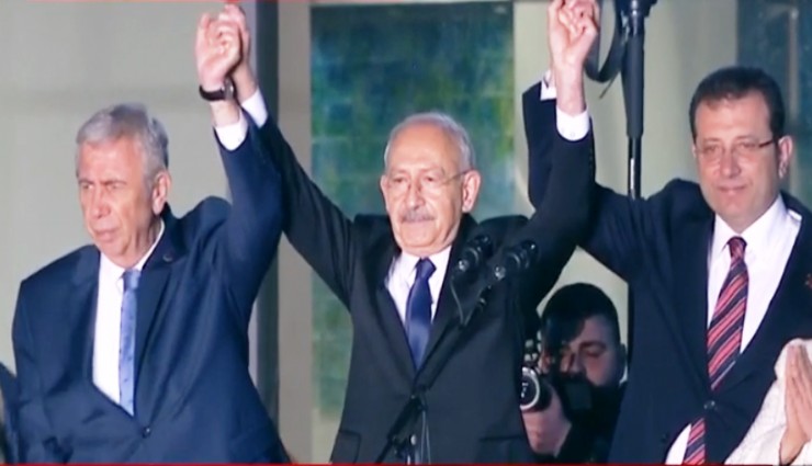CHP Genel Merkezi önünde tarihi fotoğraf: Kılıçdaroğlu, İmamoğlu ve Yavaş’ın elleri aynı anda havada