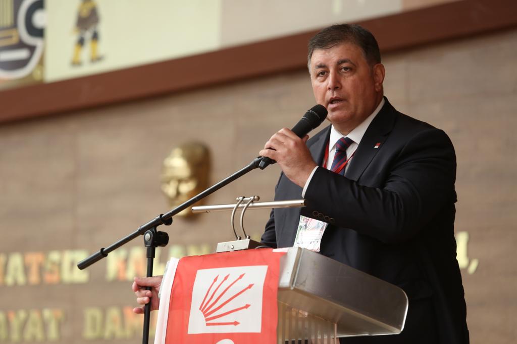 Kürsüye çıkan Karşıyaka Belediye Başkanı Cemil Tugay, “Önce bir saptama yapmak lazım. Burası Karşıyaka, burası Cumhuriyetin, Cumhuriyet değerlerinin kalesi. Burası Atatürk'ün, Atatürkçülüğün kalesi. Burası Zübeyde Annemizin yattığı yer. Burası CHP'nin kalesi. Bunu hiçbir zaman unutmamak lazım. CHP'nin ilçe kongreleri de bu duyguyu en yoğun yaşadığımız anlardan bir tanesidir. Genel merkezimin bu süreci başlatmak ve hızlıca tamamlama ihtiyacı duydu. Geçirmiş olduğumuz genel seçim ve bunun ardında partimize yönelik suçlamalar. Belki de bizim itibarımızı düşürmek için yapılan bazı yayınlar ve söylemler.Bunu düzeltmek adına açtığınız her TV kanalında, her gazetede CHP değişsin diyen insanlara bence parti örgütü olarak cevap vermek adına yapıyoruz. Bir genel seçim yaşadık. Hepimiz kazanacağımıza inanıyorduk Burada sokak sokak ev ev gezen arkadaşlarımız var. Sandık başlarında umutla bekleyen arkadaşlarımız var. Sadece Karşıyaka'da değil gücümüzün yettiği her yerde çalıştık. CHP örgütü gurur duymalıdır, genel başkanımıza yüzde 83 oy aldık burada. Bunlar kendiliğinden olmadı. Bunlar emekle oldu. Bu emeği harcayan herkese saygı göstermek gerekir. Biz bu emeği gösterirken başka partilerin toplantılarına katılanlar CHP'nin değerlerini tekrar hatırlatmak isterim. Çok ayıp ettiler. CHP'ye inanmıyorsanız, bu salonlarda onların toplantılarında oluyorsunuz lütfen gidin buradan. Ben Mustafa Kemal Atatürk'e inanarak burada olan biriyim. Kendine sadece delege seçimlerinde ya da sosyal medyada genel başkanı eleştirmekle bu kimliği taşıyanlar yaptıklarından utanmalılar. Aranızda çok saygı duyduğum büyüklerim kardeşlerim var. Herkese yoldaşım diyorum. Biz bugün bu saçma sapan kanallarda, gazetelerde, kahve köşelerinde CHP'yi tartışırken ülkemizin içinde bulunduğu durumu unutmamak ve unutturmamak zorundayız. Adalet var mı? Adalet olsaydı sadece söylediği sözler yüzünden cezaevinde çürüyen insanlar olmazdı” ifadelerini kullandı.