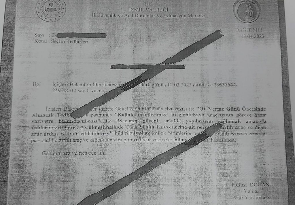 Asıl önemli konuya geliyorum. Güvenlik ve Acil Durumlar Koordinasyon Merkezi (GAMER) üzerinden yapılan yeni bir operasyondan bahsediyorum. Bu gördüğünüz belge, İzmir İl GAMER Merkezi’nin yazısıdır. İçişleri Bakanlığı İller İdaresi Genel Müdürlüğü’nü bir yazısın il valilikleri ordu komutanlıklarına gönderiyor.
