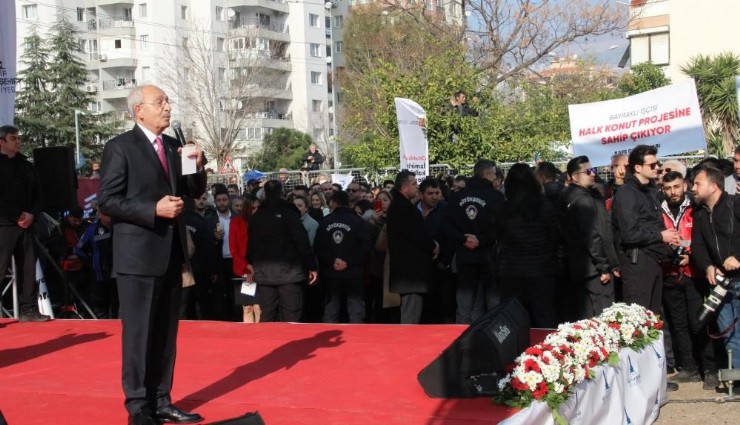 Cumhuriyet Halk Partisi Genel Başkanı Kemal Kılıçdaroğlu, bir dizi program için geldiği İzmir'de, Bayraklı'da geliştirilen Halk Konut Projesi’yle Dilber Apartmanı’nın temel atma törenine katıldı. Burada konuşan Kılıçdaroğlu, "Depreme dayanıklı konutlar için ilk temeli burada attık, bunu Türkiye'ye yayacağız. Temel amacımız, Türkiye'de herkesin huzur içinde yaşaması" dedi.