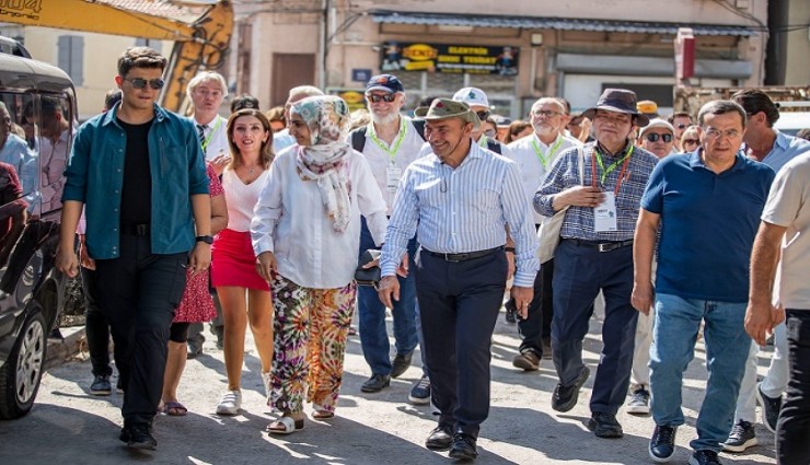 İzmir Büyükşehir Belediye Başkanı Tunç Soyer, Uluslararası Cittaslow Birliği heyetine Konak Pazaryeri Mahallesi'nde yürüttükleri “Sakin Mahalle” çalışmalarını yerinde anlattı.