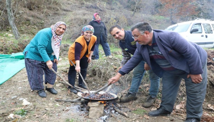 Kestanenin yapım tarifini veren üretici Raziye Karaoğlan, “Bu yılki hasadımızı tamamladık. Dağlardan toplayarak getirdik, otumuzun altına koyduk. Bir süre bekledikten sonra çıkardık. Bugün hasadın son günü. Her yerden alıcılarımız geliyor. Kestanemiz çok lezzetlidir. Herkesin alıp yemesini tavsiye ederim. Sobada yapılacak diye bir şart yok. Ben mesela fırında yapıyorum. Soba bulamadığımız için tüple tavada yapıyoruz. Alıcılarımıza nasıl yapılabileceğini tavsiye ediyorum” dedi.