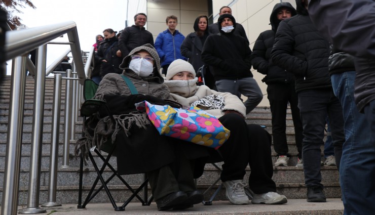 İndirim fırsatını kaçırmamak için gece yarısı marketin önünde kuyruk oluşturdular