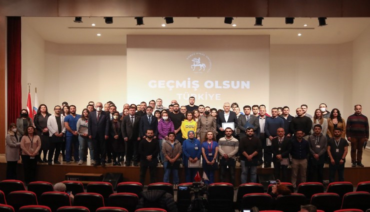 Deprem bölgesinden dönen DEÜ ekiplerine teşekkür belgesi