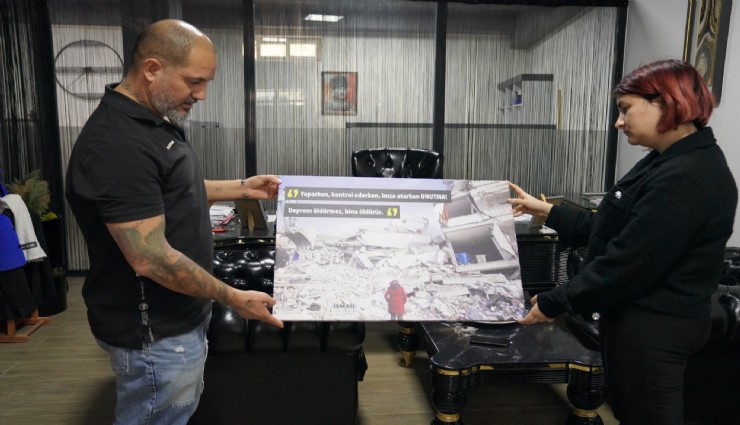 Yaren Güngören 25 yaşında genç bir mimar… Ailesi ile birlikte yaşadığı Gaziantep’te, deprem felaketinin tam ortasında kaldı. Evi hasar aldı, birçok yakınını da depremde kaybetti. Felaketin ardından ailesi ile birlikte İzmir’in Seferihisar ilçesine göç eden Yaren, Seferihisar Belediyesi ile birlikte ilçedeki mimar, inşaat mühendisi, yapı denetim uzmanları ve müteahhitleri ziyaret ederek, yaşadıklarını paylaştı. Genç mimar Güngören’in, ziyaretleri sırasında meslektaşlarına hediye ettiği ve üzerinde, depremin sembolü haline gelen fotoğraflar ile “Yaparken, kontrol ederken, imza atarken unutma! Deprem öldürmez, bina öldürür” yazan tablolar duygu dolu anların yaşanmasına neden oldu.