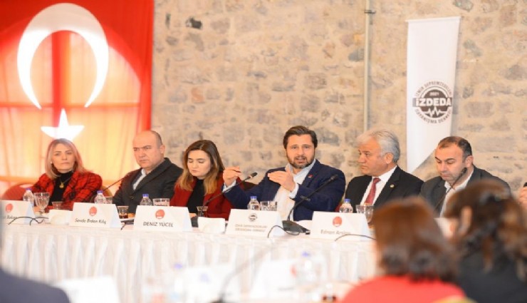 Açıklamalarda bulunan CHP İzmir İl Başkanı Deniz Yücel ise kendilerinin vekilleri ile birlikte her daim depremzedelerin yanında olduklarını belirterek, "İzmir depremzedeleri Dayanışma Derneği’nin davetiyle bugün milletvekillerimizle beraber toplantıya katıldık. Bu toplantı fikri şöyle gelişti; derneği bir ziyaret ettiğimizde başkanımızın, 'Bütün siyasi partiler ve milletvekilleri bir masa etrafında buluşup da neden bu konuya bir çözüm üretmiyorsunuz?' gibi bir talebi oldu. Biz de dedik ki; her zaman bir araya geliriz. AK Parti ile MHP ile mecliste grubu olan diğer partiler ile... Dernek yönetiminin daveti ile bugün İzmir milletvekillerimizle birlikte buradaydık. İZDEDA depremzedelerin sorunlarının çözülmesi konusunda gerçekten önemli bir sorumluluk ve inisiyatif alıyor. Bugün biz 6 milletvekilimizle buradaydık. Diğer siyasi partileri burada göremedik. Herhalde daha önemli bir işleri vardı, bilemiyorum. Biz her zaman sorunların çözülmesi konusunda bir araya gelmeye orta masa etrafında bir araya gelip bunları konuşmaya, çözüm üretmeye hazırız. Konuşup, tartışıp istişare edip de çözemeyeceğimiz hiçbir şey yok. Depremin hemen akabininde CHP olarak oradaydık. İzmir milletvekillerimizin dışında CHP Genel Başkanımız Kemal Kılıçdaroğlu’nun görevlendirmesiyle 100 kadar milletvekilimiz deprem alanındaydı. İhtiyaçların ve sorunların giderilmesi konusunda nöbet tuttular. Bugün yine buradayız, yarın da depremzedelere destek olmak için üzerimize düşen ne varsa inisiyatif alıp sorumluluk alıp çözüm üretmek için yine onlar bir arada olmaya devam edeceğiz" ifadelerini kullandı.