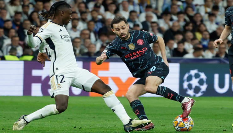 UEFA Şampiyonlar Ligi’nde çeyrek final heyecanı iki maçla başladı. Son şampiyon Manchester City, İspanya’da Real Madrid’e konuk oldu. Fransız hakem Letexier’in düdük çaldığı müsabakanın 2. dakikasında İngiliz ekibi Bernardo Silva’nın golüyle 1-0 öne geçti. Ev sahibi Real Madrid, 12. dakikada Camavinga ile beraberliği sağladı. Sağ kanatta topla buluşan Fransız oyuncu ceza yayına doğru ilerleyerek yaptığı vuruşta Ruben Dias’a çarpan top filelerle buluştu. Bu golden iki dakika sonra sol kanattan hızla ceza sahasına giren Rodrygo, takımını öne geçiren golü kaydetti. İlk yarıyı 2-1 geride kapatan City, 66’da Foden, 71’de de Gvardiol’un ceza sahası dışından attıkları gollerle 3-2 öne geçti. İspanyol ekibi bu dakikadan itibaren baskısını arttırken, 79. dakikada Vinicius’un pasında Federico Valverde topu filelere göndererek skoru 3-3’e taşıdı. Karşılaşmada başka gol olmazken iki takım da sahadan berabere ayrıldı. Real Madrid’de yedek kulübesinde yer alan milli futbolcu Arda Güler, süre alamadı.