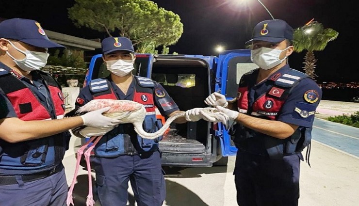 İzmir'in Aliağa ilçesinde devriye gezen jandarma ekiplerinin bulduğu yaralı flamingo koruma altına alındı.