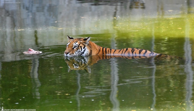 İzmir Büyükşehir Belediyesi Doğal Yaşam Parkı'nın sakinleri, 40 dereceyi aşan sıcaklıklarda kendileri için özel olarak hazırlanan meyveli buz kalıpları ile serinliyor. Sıcak havadan etkilenmemek için havuza giren ve sık sık duş alan hayvanlar ziyaretçiler tarafından ilgiyle karşılanıyor. Doğal Yaşam Parkı, 9 günlük Kurban Bayramı tatilinde de ziyaretçilerini bekliyor.