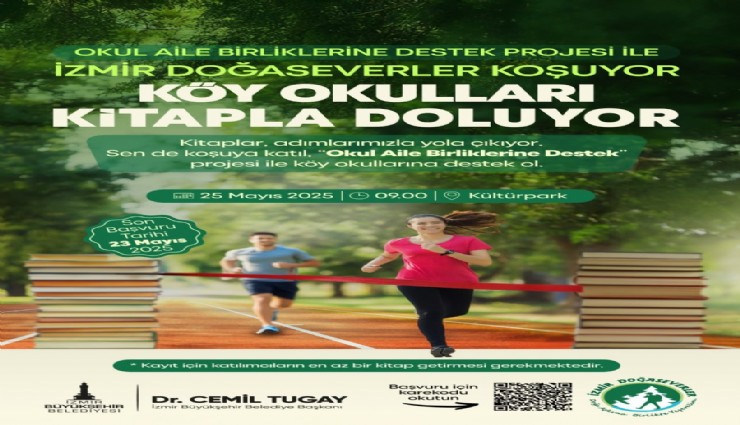 İzmir Büyükşehir Belediyesi, Okul Aile Birliklerine Destek Projesi kapsamında anlamlı bir organizasyon düzenliyor. İzmir Doğaseverler Topluluğu ile birlikte 25 Mayıs günü saat 09.00’da Kültürpark’ta koşu etkinliği gerçekleştirilecek. Koşuya katılacak yurttaşlar, yanlarında en az bir kitap getirerek köy okullarının kitapla buluşmasına destek olacak.