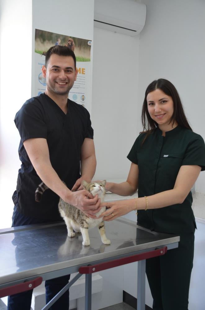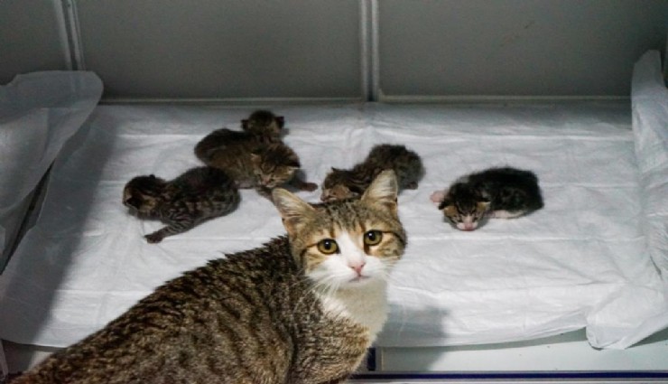 Sokak kedisinin bu süreçte tüm yaptıkları ise kliniğin güvenlik kameralarına anbean yansıdı. Veteriner hekimler ise dünyaya gelen 5 yavru ve anneyi bakıma alarak sağlık kontrollerini gerçekleştirdi. Sokak kedisinin doğum için kliniği seçmesinin şaşkınlığını yaşadığını ifade eden klinik sahiplerinden Veteriner Hekim Ömer Çınar, yaşanan süreci anlatarak "O gün muayene odasında olduğumuzdan başlangıcını fark edemiyoruz. Kedi doğum öncesinde kliniğin yanına geliyor ve beklemeye başlıyor. Sonra kapının önünde dolaşıyor. Aç olduğunu düşündük kuru mama verdik ama yemedi. Sonra yaş mama verdik. Sonra kucağıma çıktı. Sonra doğumun ileri aşamada olduğunu fark ettik, elim ıslandı ve doğum suyunun geldiğini fark ettik. Aşağıda sessiz bir yere aldık ve birkaç saat sonra 5 tekir yavru ile bizi bekledi. Medikal ve sağlık bir durumdalar. Yavrular 2 aylık olunca anneyi kısırlaştıracağız. Ardından da anneyi ve yavrularını sahiplendirmeyi düşünüyoruz. Bu konuda da vatandaşlarımızdan yardım bekliyoruz" dedi.