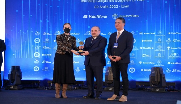 Türkiye’nin saygın yükseköğretim kurumlarından Dokuz Eylül Üniversitesi (DEÜ), İzmir’de Sanayi ve Teknoloji Bakanı Mustafa Varank’ın katılımıyla gerçekleşen AR-GE ve Tasarım Merkezleri ile Teknoloji Geliştirme Bölgeleri Zirvesi ve Ödül Törenine başarılarıyla damga vurdu. Balçova’da yapılan törende Dokuz Eylül Üniversitesi Teknoparkı (DEPARK), Teknoloji Geliştirme Bölgeleri 2021 Yılı Performans Endeks Sonuçları neticesinde genel sıralamada 70, Teknoloji Geliştirme Bölgesi sıralamasında bir yıl içinde 15 sıra birden yükselerek 14. basamakta yer alırken; “Gelişmekte Olan Teknoloji Geliştirme Bölgeleri” kategorisinde ise üçüncülük ödülünün sahibi oldu. Dokuz Eylül Üniversitesi Rektörü Prof. Dr. Nükhet Hotar, ödülü Sanayi ve Teknoloji Bakanı Mustafa Varank’ın elinden aldı.