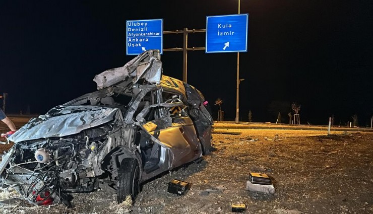 Uşak’ta meydana gelen trafik kazasında, döner kavşaktan düz karşıya geçerek hurdaya dönen minibüsün sürücüsü hayatını kaybetti.