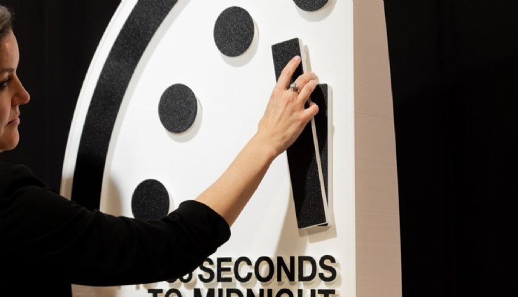 ABD’deki Chicago Üniversitesi’nde "Bulletin of the Atomic Scientists" dergisinin yönetim kadrosu tarafından 1947 yılı itibarıyla nükleer felaket için geri sayımı başlatılan sembolik saati, gece yarısına daha da yaklaştırıldı. Saat, gün bitimine 85 saniye kala olarak güncellenerek, dünyanın sonunu temsil eden gece yarısına bugüne kadarki en yakın noktaya ayarlanmış oldu.