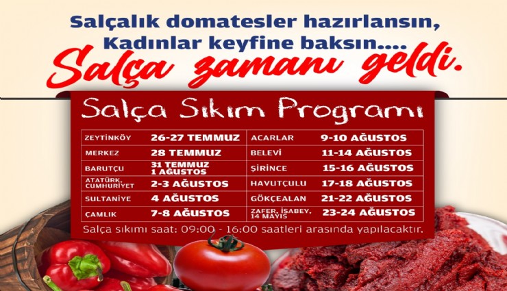 Kış hazırlıkları içinde önemli bir yer tutan salça yapımını kolaylaştıran salça makinası belirtilen tarihlerde (09.00- 16.00 saatleri arasında) köylerde ve merkez mahallelerde olacak.