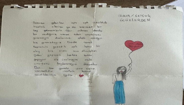 Deprem sonrasında Efes Selçuk Belediyesi’nin çağrısıyla kent halkının yoğun ilgi ve destek gösterdiği dayanışma hareketi kapsamında Efes Selçuk’tan giden binlerce koliden birinde yer alan ve Efes Selçuk halkının yakından tanıdığı üçüz kardeşler tarafından yazılan mektup şöyle: