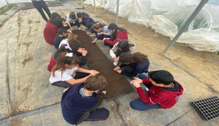 Çocuklara sürdürülebilir tarımın, atalık tohumun önemini uygulamalı olarak öğretmeyi amaçlayan “Tohumdan Sofraya, Sofradan Tohuma” Projesi için Efes Tarlası Yaşam Köyü’ne gelen öğrenciler, burada toprağa dokunarak çalışmaları uygulamalı olarak izlediler.