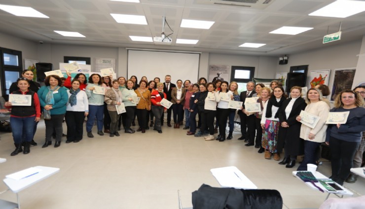 Efes Tarlası Yaşam Köyü’nde düzenlenen "Kadın Girişimciliğinde Yol Haritaları Eğitimi" tamamlandı, eğitimi tamamlayan 35 kadın sertifikalarını Selçuk Belediye Başkanı Filiz Ceritoğlu Sengel’den aldı