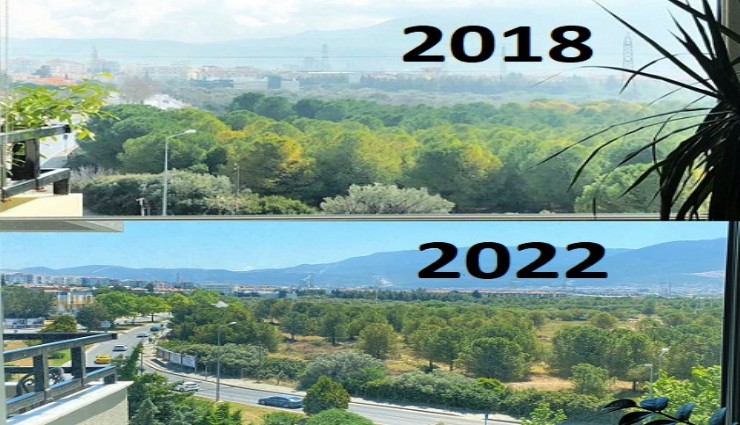 Ege Üniversitesinin Konuk Evi ve Lojman arazisinde ağaç kesimleri vatandaşların tepkisine neden olmuştu. Bölgede yaşayan vatandaşların 4 yıl arayla aynı yerden çektiği fotoğraflar üzücü tabloyu gözler önüne serdi. Daha 4 yıl önce sık ağaçların olduğu alanda şimdi büyük açıklık alanlar oluştuğu görüldü.