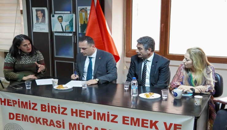 Kendisi de Tüm Yerel -Sen’de Şube Başkanlığı yapmış olan Bornova Belediye Başkan Adayı Ömer Eşki, Tüm Yerel Sen ve Tüm Bel-Sen’i ziyaret etti. Tüm Yerel-Sen’in MYK Üyesi Onur Erdağ ve 2 No’lu Şube Başkanı Ali Balık ve Yönetim Kurulu Üyeleriyle bir araya gelen Eşki, bir sendikacı ve emek taraftarı olarak her zaman emek mücadelesinin yanında olacağının altını çizdi.
