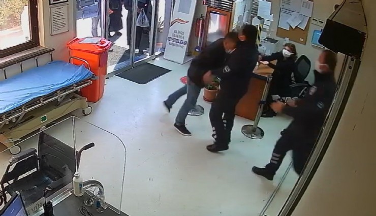 İzmir Büyükşehir Belediyesi Eşrefpaşa Hastanesinde, iddialara göre enjektör yaptırmaya gelen ve işlemin geç yapıldığını iddia eden bir hasta, güvenlik görevlilerine saldırdı. Darp anları güvenlik kameralarına yansıdı.