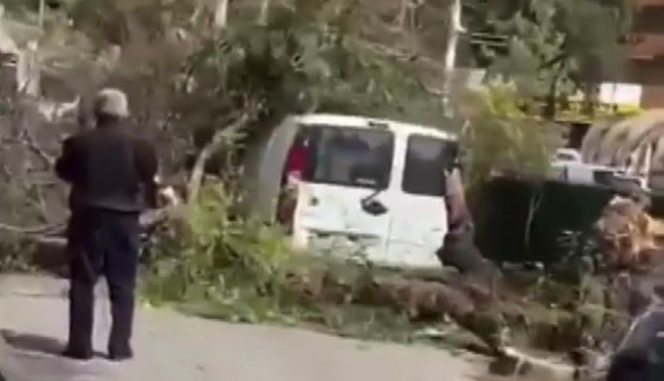 İzmir'de şiddetli fırtına hayatı olumsuz etkilerken, kentin bazı bölgelerinde çatılar uçtu, ağaçlar devrildi.