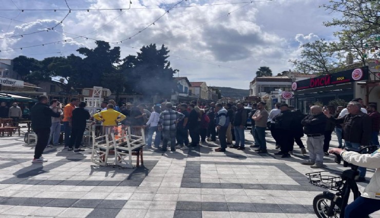Foça'da belediye başkanını protesto eden esnaf, masa ve sandalye yaktı