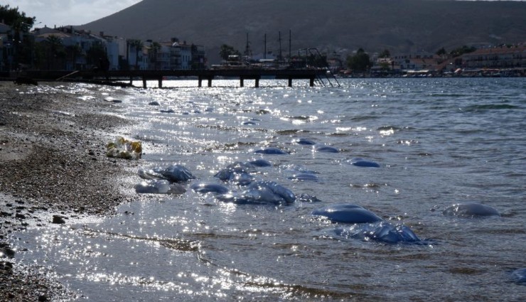 Foça plajlarında denizanası istilası: Yüzlercesi kıyıya vurdu