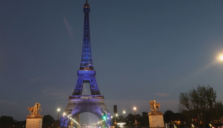 Yürüyüşün ardından havanın kararması ile dünyaca ünlü Eyfel Kulesi’ne İsrail ile dayanışma içinde olunduğu mesajını vermek amacıyla İsrail bayrağının silüeti yansıtıldı.
