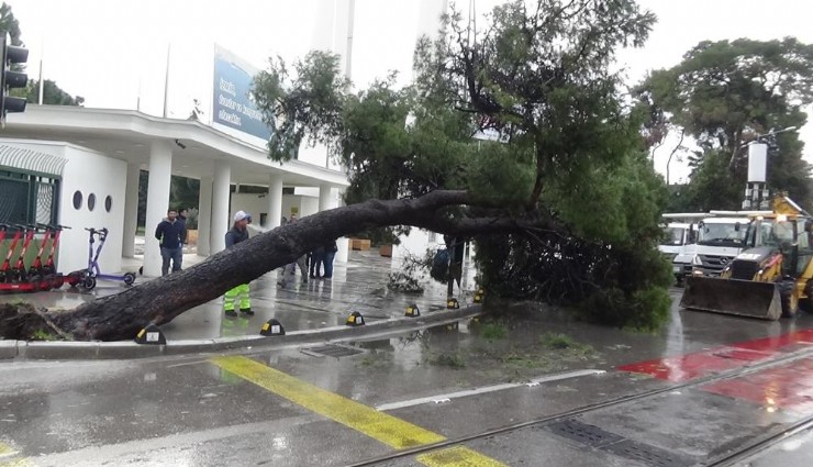 İzmir'de bugün saat 08.30 sıralarında Şair Eşref Bulvarı Kültürpark Lozan Kapısı önünde meydana gelen olayda büyük bir facia atlatıldı. Fuar Kültürpark girişinin önünde bulunan yaklaşık 15 metrelik dev ağaç, bir anda devrildi. Kökünden kopan ağacın kaldırıma ve yolun bir kısmına devrildiğini görenler durumu ekiplere bildirdi. Bu sırada araç trafiği kilitlendi. İhbar üzerine olay yerine polis ve belediye ekipleri sevk edildi. Ağaç belediye ekipleri tarafından parçalanarak kaldırıldı.