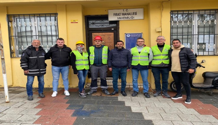 Gaziemir Belediyesi ekipleri, deprem bölgesinde hasar tespiti yapıyor