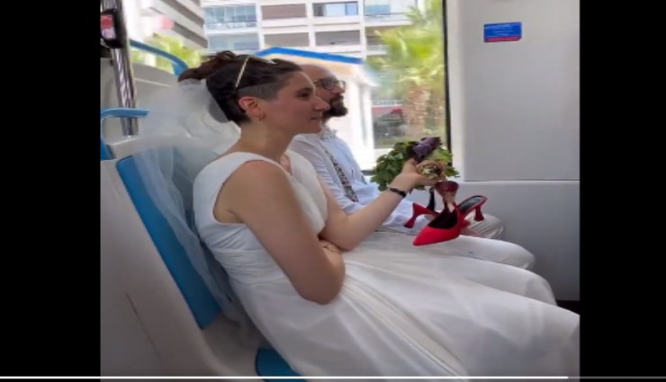 İzmir’de bir çift gelin arabası olarak tramvayı tercih etti. Nikahlarına tramvayla giden çift durağı da eğlence alanına çevirdi. Doğa ve Barış çiftinin görüntüleri sosyal medyada gündem oldu.