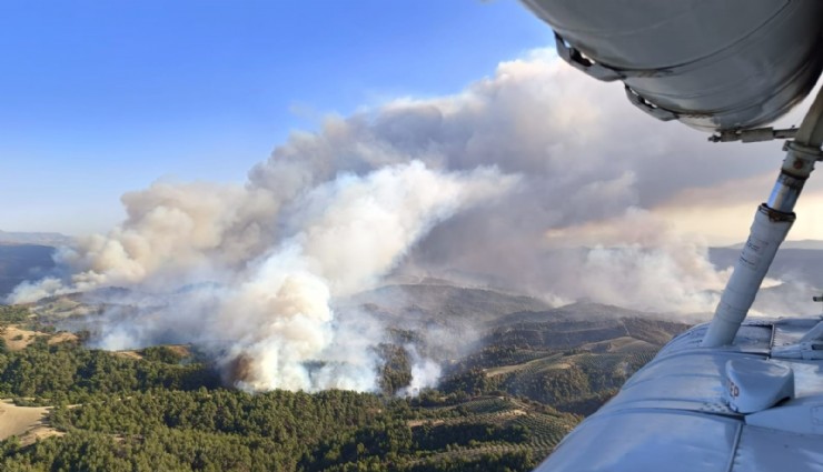 Manisa'nın Gördes ilçesine bağlı Boyalı Mahallesi civarında dün saat 14.35'te çıkan orman yangını bugün de devam etti. Kenarındaki kurumuş otlardan çıktığı tahmin edilen yangına İzmir Orman Bölge Müdürlüğüne ait 11 hava aracı, 83 söndürme ekibi, 36 su tankeri, 18 iş makinesi ile birlikte Manisa Büyükşehir Belediyesi İtfaiye ekipleri müdahale ediyor. Yangında ayrıca 3 sağlık ekibi, 7 jandarma asayiş ekibi 5 trafik ekibi ve toplam 361 personel görev yapıyor.
