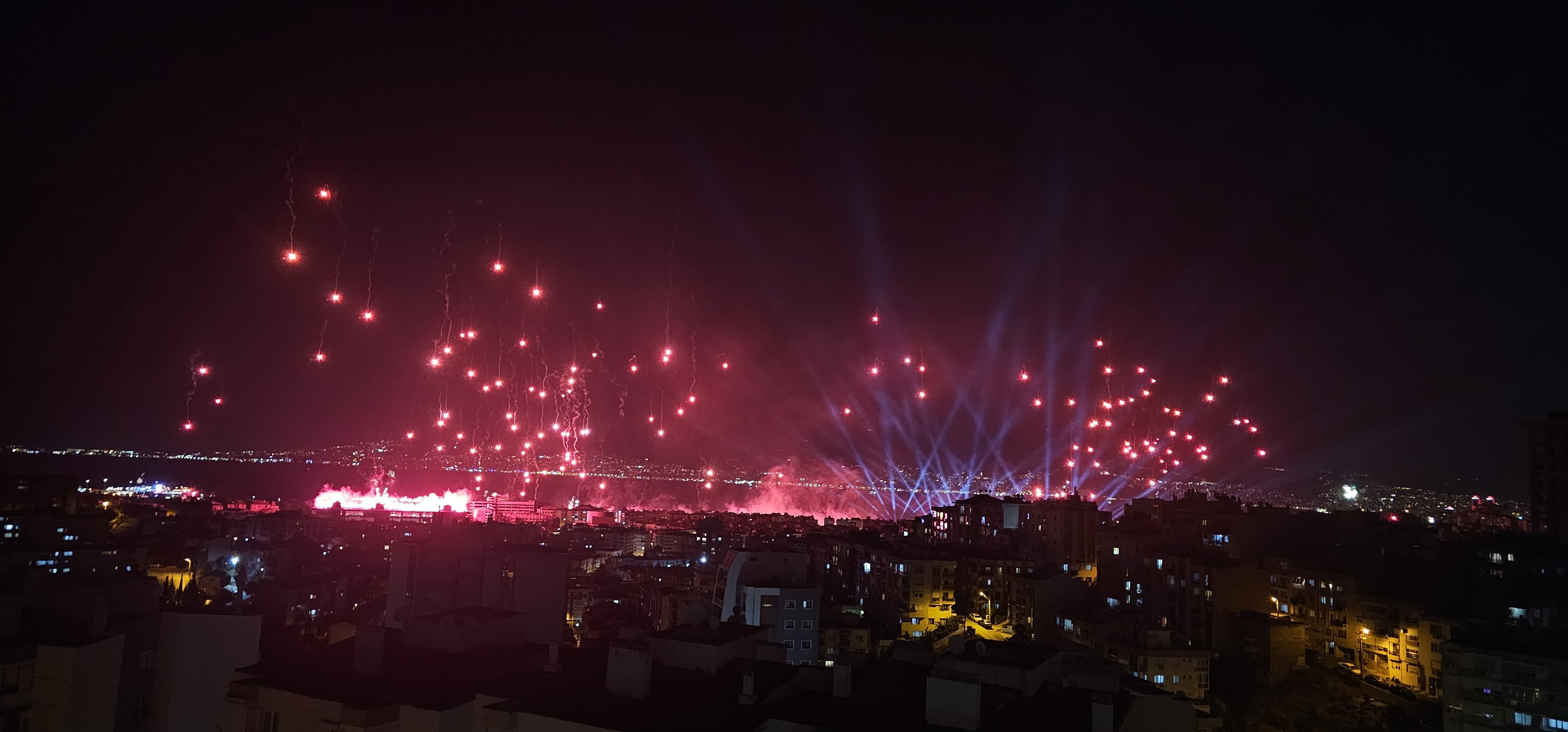 FOTOĞRAFLAR: AYKUT FIRAT-Göztepe Spor Kulübü, 100. kuruluş yıl dönümünü büyük bir coşkuyla kutladı. Sarı-kırmızılı renklere gönül veren taraftarlar saatler 19.25’i göstermesiyle birlikte Güzelyalı Sahili'nde toplanmaya başladı. Saatler 20.00 olunca da DJ Levent Özbay sahneye çıktı. Müzik gösterileriyle binlerce sarı-kırmızılı taraftar eğlenirken ışık ve lazer gösterisi de yapıldı.
