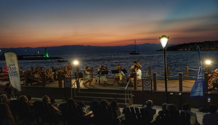 Yaz ayları boyunca Cuma akşamları kültür ve sanatın merkezi Çeşme ve Alaçatı’da eş zamanlı gerçekleşen gün batımı konserleri büyük ilgi görüyor. Çeşme Belediyesi tarafından yapılan Güneşlenme Terasları ve yenilenen Alaçatı Meydanı’nda düzenlenen konserde Çeşmeliler günbatımı izlerken müziğin tadını çıkarıyor.