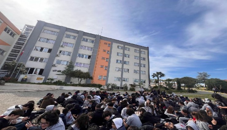İzmir’in Güzelbahçe ilçesindeki 60. Yıl Anadolu Lisesi öğrencileri, okul bahçesinde gerçekleştirdikleri oturma eylemiyle öğretmenlerine sahip çıktı.