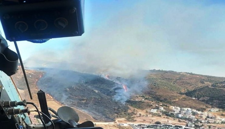 İzmir'in Güzelbahçe ilçesinde makilik alanda çıkan yangına ekiplerin havadan ve karadan müdahalesi sürüyor.
