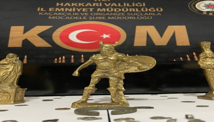 Hakkâri Yüksekova’da bir iş yerine yapılan bir tarihi eser operasyonunda 111 adet sikke 40 adet kolye ucu, 3 adet heykel, 2 adet bilezik kelepçe ele geçirildi.