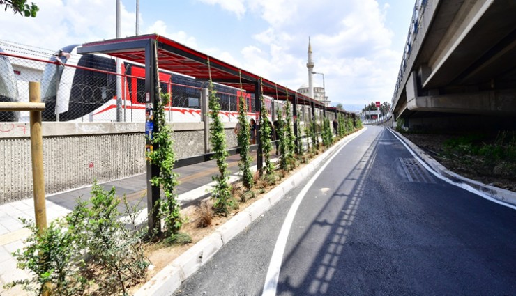 Yeşil alan düzenlemelerinde hava kirliliğini azaltmak amacıyla az bakım gerektiren, karbon tutuculuğu yüksek bitki türleri kullanıldı. Otobüs durakları ve otobüs aktarma merkezi İzmir Büyükşehir Belediyesi’nin Doğayla Uyumlu Yaşam Stratejisi doğrultusunda sürdürülebilir, doğa esaslı çözümlerle düzenlendi. İklim krizine karşı kenti dirençli hale getirmek için otobüs duraklarında Yeşil Durak uygulaması yapıldı. Durakların arkasına yeşil cepler yapıldı ve bu ceplere ağaçlar dikilerek gölge alanlar oluşturuldu. Otobüs aktarma merkezi yeşil alanları, dinlenme ve bekleme alanları ile kentlinin yaşam kalitesini yükseltecek şekilde düzenlendi.